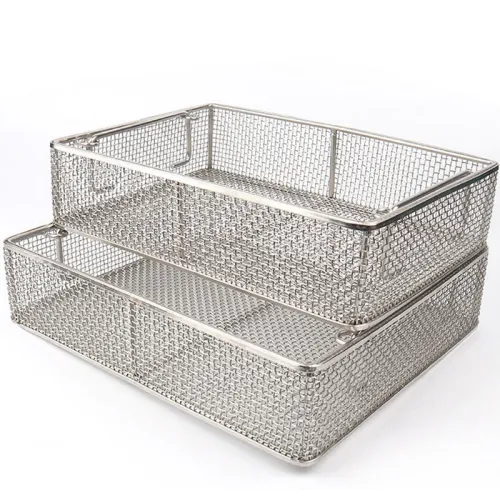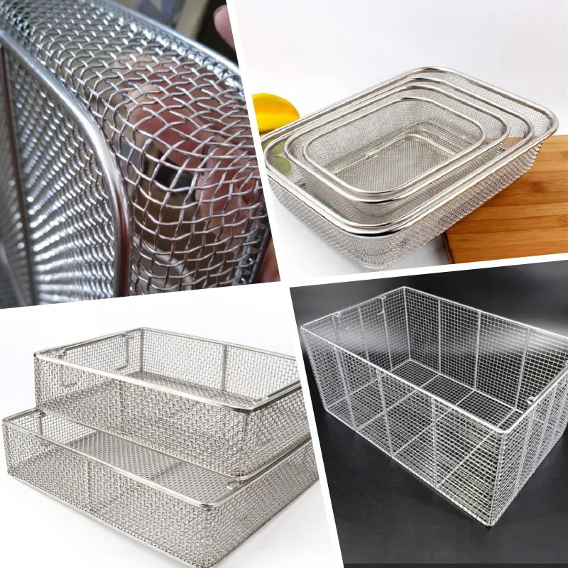 1. Industrial Cleaning and WashingMesh baskets are widely used in ultrasonic cleaning systems and parts washers. They securely hold components while allowing cleaning fluids to circulate freely, ensuring thorough cleaning.2. Food Processing IndustryIn food production, stainless steel mesh baskets are used for washing, draining, and transporting fruits, vegetables, seafood, and other food products. Their hygienic properties meet strict food safety standards.3. Medical and Sterilization UseHospitals and laboratories rely on stainless steel baskets for sterilizing surgical instruments. Their ability to withstand autoclave temperatures makes them ideal for repeated sterilization cycles.4. Filtration and SeparationMesh baskets are used in filtration systems to separate solids from liquids or gases. They are commonly found in oil, chemical, and water treatment industries.5. Storage and Material HandlingThese baskets are also used for storing and transporting small parts in manufacturing facilities. Their construction ensures safety during handling and logistics. -